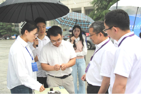会上,将采用“展奖结合”方式,在展示现场由专家评委和观众评选出最佳创新创意奖、最具应用前景奖、最具产业价值奖、最具社会贡献奖、最具前沿理论开拓奖、最受观众欢迎奖和最佳展示效果奖七类奖项。展出既有“超高速激光增材制造高温合金的研究”等系统性理论研究成果,又有“湖南省残疾人辅助性就业文创产品开发”、“洞庭湖流域洪旱灾害研究”等聚焦生产生活解决实际问题的实践创新成果,还有“赴湖南省益阳市红色文学赋能乡村振兴专业实践项目”等围绕革命优秀传统的“两创”式发展的宣传实践作品,生动展现出我校学子在实践科技创新、开拓前沿理论、投身乡村振兴、扎根社会服务、延续红色精神等方面取得的卓越成就和青春力量。天空泛起的朦胧细雨仍抵不过我校师生观展的热情,大家共同漫步展中,详细了解各项优秀作品的独到之处和现实意义,仔细倾听各项目负责人带来的精彩讲解,并就如何更好完善项目给出了可行之策。