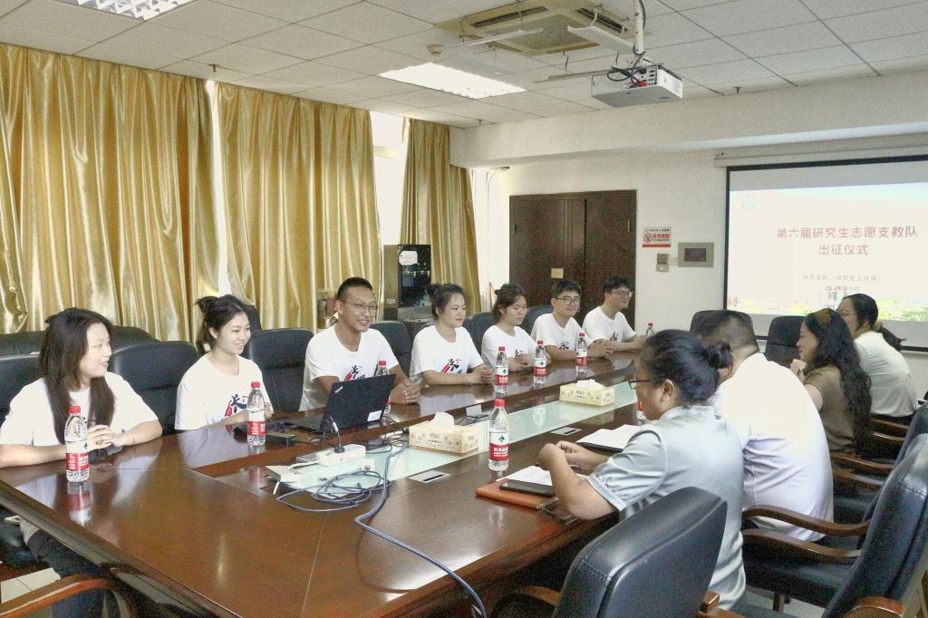 把知识送进大山,用温暖点燃希望。9月2日上午,我校第六届研究生志愿支教队出征仪式在云塘校区一办公楼B202顺利召开。研究生院院长何忠明,研究生院副院长、研工部部长闾兰,研究生院思政科吕倩、李佳美以及全体支教队队员出席本次仪式。会议由吕倩老师主持。
