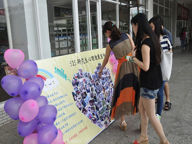 五月的校园虽然一直阴雨绵绵,但活动展板上每一张笑脸展示着我校各院学生乐观积极向上的精神面貌,同时也为同学们注入一股正确面对困难和微笑面对生活的正能量。每个去到活动现场的同学还收到了一份印着“笑对生活”的心理健康宣传书签,上面的一句话令人印象深刻:生活是一面镜子,你对它微笑,它便对你微笑。希望能借此提醒研究生学子,遇到困难也不要忘记微笑。