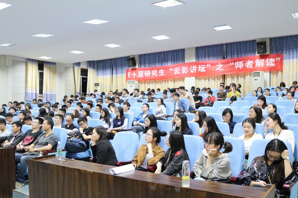 4月10日晚上7点,我校第十届研究生“云影讲坛”之第一讲“师者解读”在金盆岭校区12教200成功开讲。我校创新创业教育学院田双喜副教授作了主题为“站在人生战略高度,思考职业生涯幸福”的精彩讲座,来自各学院的200余名研究生代表参加学习交流。