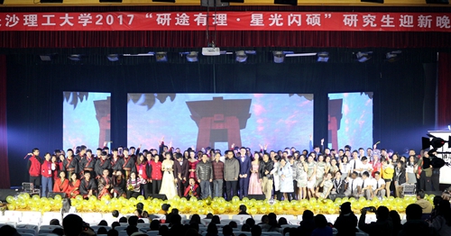 研途有理,星光闪硕。12月28日晚,我校研究生迎新晚会在金盆岭校区五教大礼堂精彩上演。研究生院院长管德清、土木学院党委书记张可荣、研工部部长兼研究生院副院长刘亚辉、校团委副书记文丽丽、交通运输工程学院党委副书记田上、电气与信息工程学院党委副书记丁丹、文法学院党委副书记魏桃初、马克思主义学院副院长李雨燕、外国语学院副院长黄月华以及研究生导师代表、各学院研究生辅导员、兄弟高校的研会代表一同观看晚会,喜迎新年的到来。