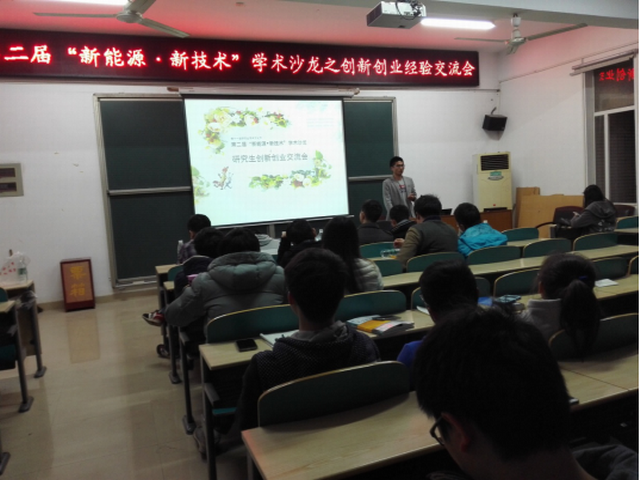 3月28日晚上19:15,物理与电子科学学院第二届“新能源·新技术”学术沙龙之创新创业经验交流会在理科楼B513顺利举行。会议邀请了13级研究生曹时义、王鼎、杨凯斌、吴召剑、李程和14级研究生王磊六位同学作经验交流。研究生辅导员郑忠辉、14级和15级研究生,以及部分本科生参加了会议。交流会由15级研究生严小艳主持。