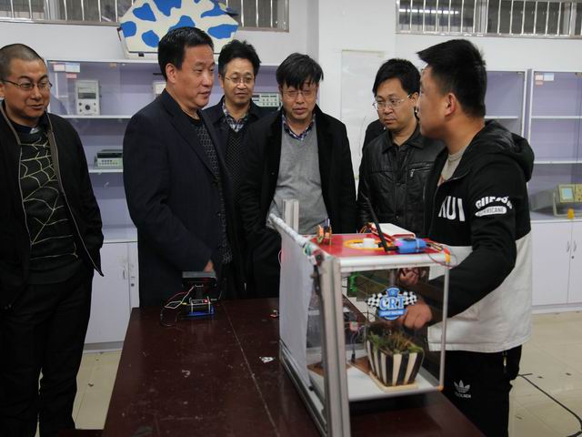 物电学院唐立军院长首先简要介绍了我院人才培养模式,大学生电子创新实验基地建设运行、学生创新创业活动开展,以及学院就业创业工作。随后陪同参观了学生的创新作品展览。我院学生向督查组的领导和专家展示了DELTA机器人下五子棋、目标跟踪识别系统、智能水杯、智能温室管理系统、自动打钉枪、小四轴飞行器、触摸屏检测、陶瓷检测设备、蓝牙智能烤火炉、重力感应无线遥控小车、旋转LED、无线单车充电系统、遥控电动滑板等自己的创新作品。