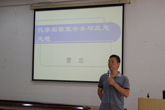 为了提高同学们的安全防范意识,促进平安校园的建设。9月8日上午10点,化学学院特邀副院长曹忠教授为研究生开展题为“化学实验室安全与应急处理”报告会。本次报告会由研究生辅导员刘文成主持,2016级全体研究生新生及部分研究生二、三年级同学参加。