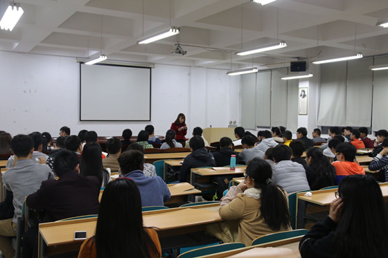 首先,江洁依次公布各班专业排名情况,指出针对班级薄弱科目,采用“三方联动”的帮扶方式,即由班长牵头帮扶、班辅全程督促、研辅专业引导,强化班级归属感和提高学习兴趣。其次,研辅刘芳公开15级各班四级过级率,并将其与各专业之间、年级之间、历届学院过级情况等方面进行横纵比较,指出各班之间的差距以及日后班级需要努力的方向。最后,江洁进行简要总结,并表达新学期的期望,希望15级学子在本专业的学业道路上获得不错成就。