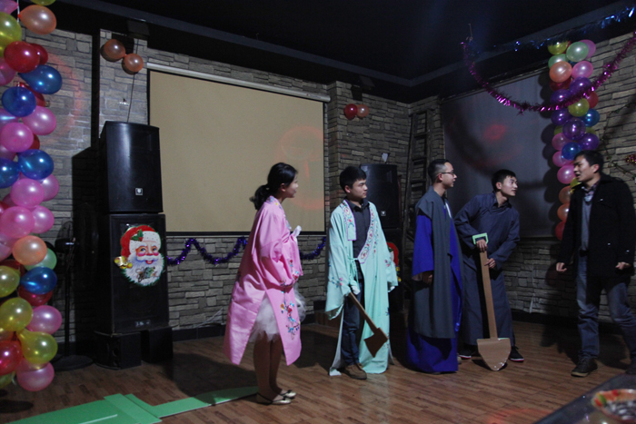 19时,晚会在主持人依次回顾我院本年度在党建、教育、科研、文体等工作开展中所取得的累累硕果后拉开序幕。欢快动感的爵士舞、耐人寻味的《同桌的你》都让晚会充满着青春的活力。随后成海鹰老师深情演唱的《传奇》、陈万求老师与学生丁予聆合作演绎的老歌《选择》以及易显飞老师演唱的《你怎么舍得我难过》展现出老师们精湛的演唱水平,也得到了在场观众的热烈掌声。2014级研究生表演的小品《蓝翔广告炼成记》更彰显出我院研究生多才多艺的一面。