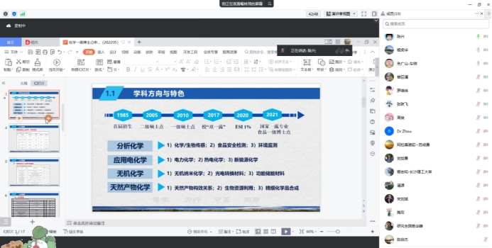 此外,为进一步促进化学学科内涵式发展、打造我校化学基础学科人才培养高地,喻林萍副院长向各位专家汇报了我院化学学科建设进展与未来的发展规划,与会专家再次对学科现状进行了深入的讨论分析,并提出了宝贵的建设性意见。