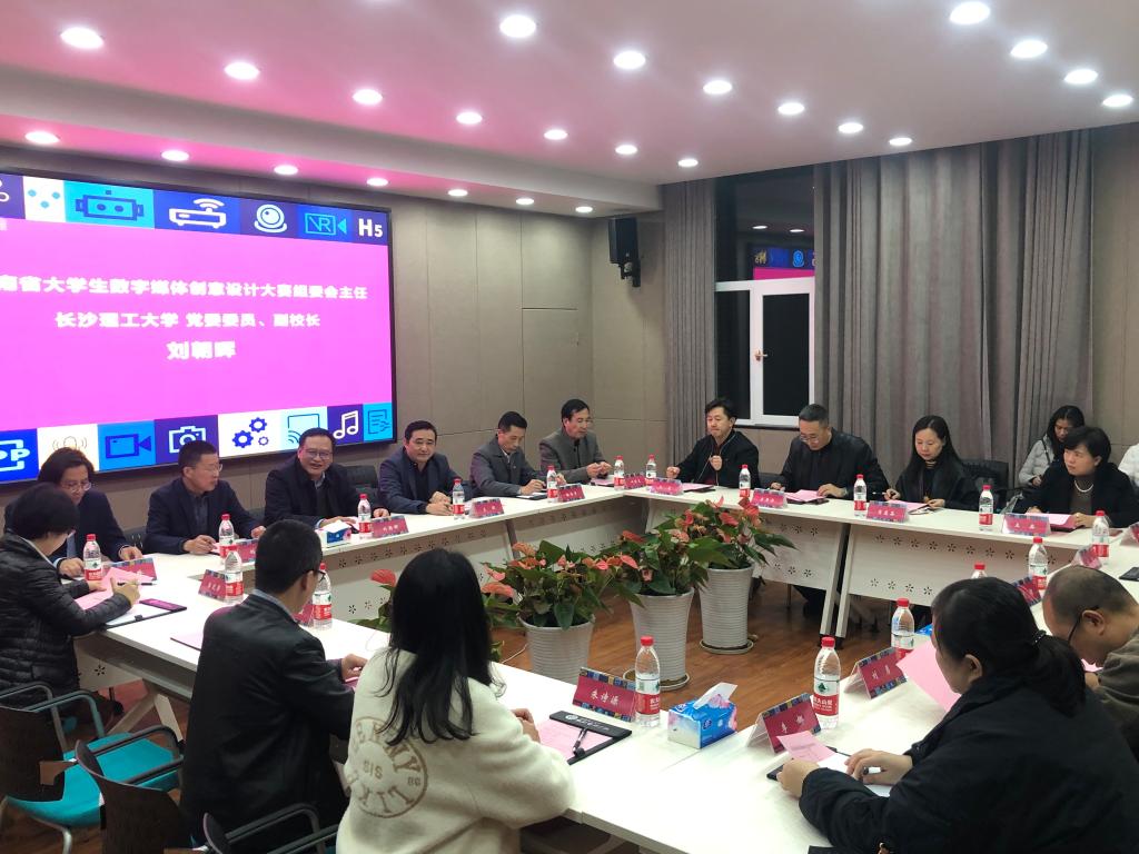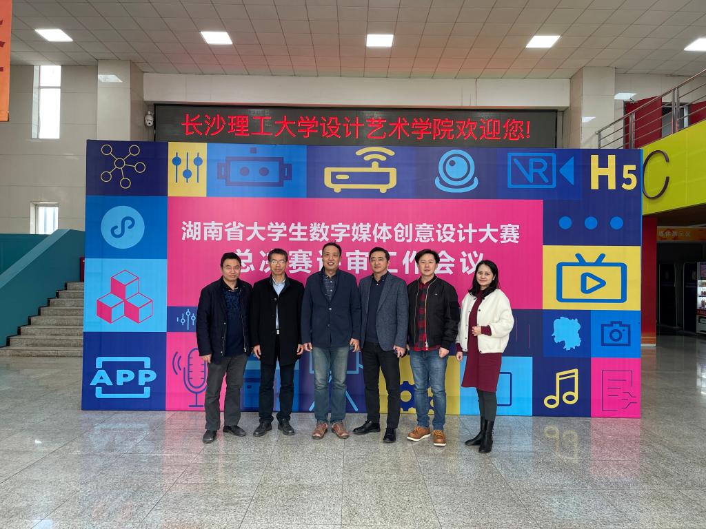 2021年11月26日-27日,2021年湖南省大学生数字媒体创意设计大赛决赛评审工作会议暨总决赛现场评审在太阳成集团tyc122cc入口设计艺术学院举行。湖南省大学生数字媒体创意设计大赛组委会主任、太阳成集团tyc122cc入口党委委员、副校长刘朝晖出席开幕式并致辞,并对大赛的基本情况进行了介绍,省内32所本科高校共推荐作品1200余件,现场限时赛21所本科高校推荐创作团队68支,各高校表现出极大的热情,此次评选出的作品代表着湖南省数字媒体专业的最高水平。湖南省大学生数字媒体创意设计大赛组委会副主任、太阳成集团tyc122cc入口设计艺术学院院长王健代表学院感谢省内高校对本次大赛的支持。湖南省大学生数字媒体创意设计大赛组委会秘书长、太阳成集团tyc122cc入口设计艺术学院副院长王龙对大赛宣讲、组稿、以及评审工作安排等相关工作做了介绍。本次大赛的专家组主要由省内专家组成,教育部动画与数字媒体教指委专家刘渊教授亲临现场指导工作。