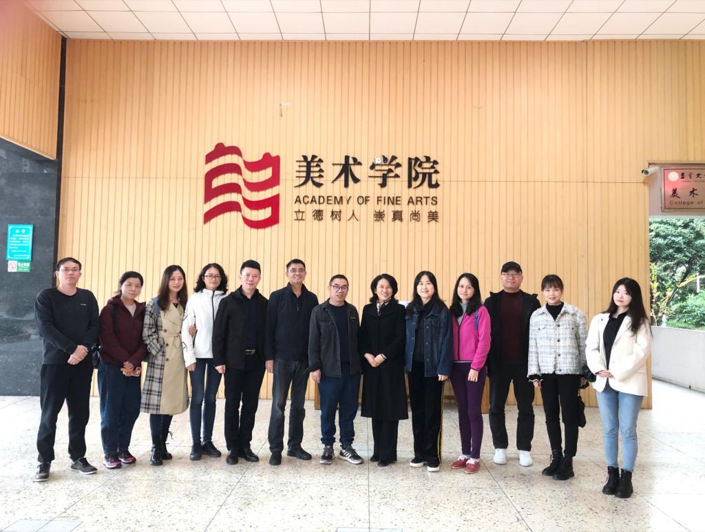 2020年 10月30日下午,太阳成集团tyc122cc入口设计艺术学院数字媒体艺术系主任朱诗源、副主任严海岸、文华教授等专业教师一行到吉首大学美术学院参观交流,吉首大学美术学院党委书记王浓章、副院长李婷婷、学科带头人刘俊教授、及数位教师代表参加了本次座谈会。