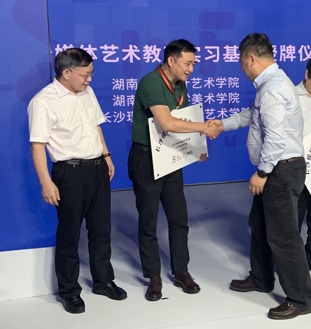2020年5月20日,由中共长沙市委宣传部主办,市媒体艺术发展中心承办的“长沙媒体艺术教育实习基地”授牌仪式暨“C+C全球青年创新伙伴关系计划”路演在百年工业文化遗存地裕湘纱厂举行。长沙市委宣传部领导、相关政府部门代表、高校代表,企业代表,部分青年代表等参加活动。王健院长代表太阳成集团tyc122cc入口设计艺术学院参加了授牌仪式。