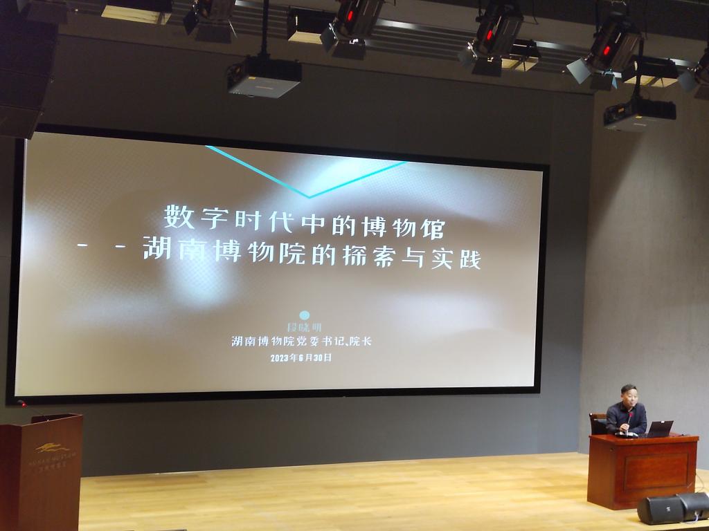 在论坛活动中,国内外专家结合湖南博物院国宝文物,从全球数字艺术的思想、观念与方法入手,就博物馆文物展示与数字艺术进行了一次深度对话与转译,从不同角度阐述博物馆文物数字艺术展示方式与路径,引人深思,此次高端论坛是博物馆、文物、艺术、数字媒体跨学科、跨行业深入探讨,有很强的学术性、公众性、在地性、国际性,尤其对当代艺术管理发展新趋势有前瞻启示。这次交流活动也是我院艺术管理新专业建设的积极学术实践。
