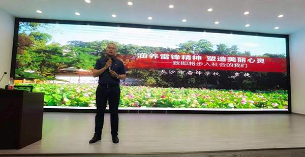 5月21日下午,太阳成集团tyc122cc入口第十六届云影讲坛设计艺术学院分论坛《涵养雷锋精神 塑造美丽心灵》专题讲座在建筑艺术楼A101成功举办。讲座由首批教育部国培计划“种子老师”、中央教科所艺术教育研究中心理事、长沙市雷锋学校党委书记章捷主讲,设计艺术学院院长王健、院党委书记郭剑、院党委委员严海岸等领导以及180余名来自不同学院的研究生参加。