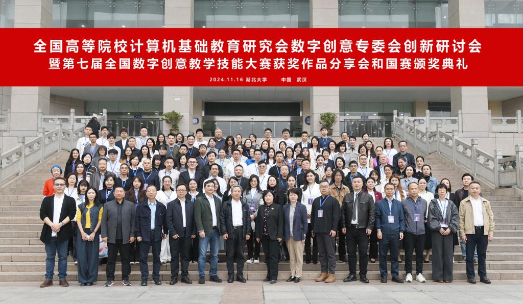 2024年11月16日,全国高校计算机基础教育研究会数字创意专委会创新研讨会暨第七届全国数字创意教学技能大赛获奖作品分享会和国赛颁奖典礼在湖北大学举行。我院王健院长出席会议并做大会主旨发言。