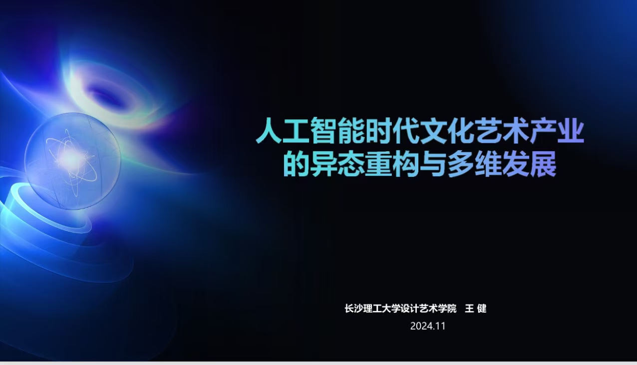 王健院长主旨发言的题为《人工智能时代文化艺术产业的异态重构与多维发展》。提出,人工智能为文化艺术带来异态重构,在创作上,智能算法可生成独特创意,协助艺术家拓展想象边界;传播中,借助大数据能精准推送作品,打破地域限制。这引发例如机器创作与人类情感表达的差异的思考。从多维发展来看,一方面要加强人机协作,让艺术家与人工智能相互启发;另一方面,需完善相关法规,保障各方权益。我们应积极培育适应新时代的文化艺术消费市场,利用虚拟现实等技术提升受众体验。同时,教育领域也要与时俱进,培养既懂艺术又能驾驭人工智能技术的复合型人才。如此,方能在人工智能浪潮中,推动文化艺术产业蓬勃发展,绽放新的辉煌。