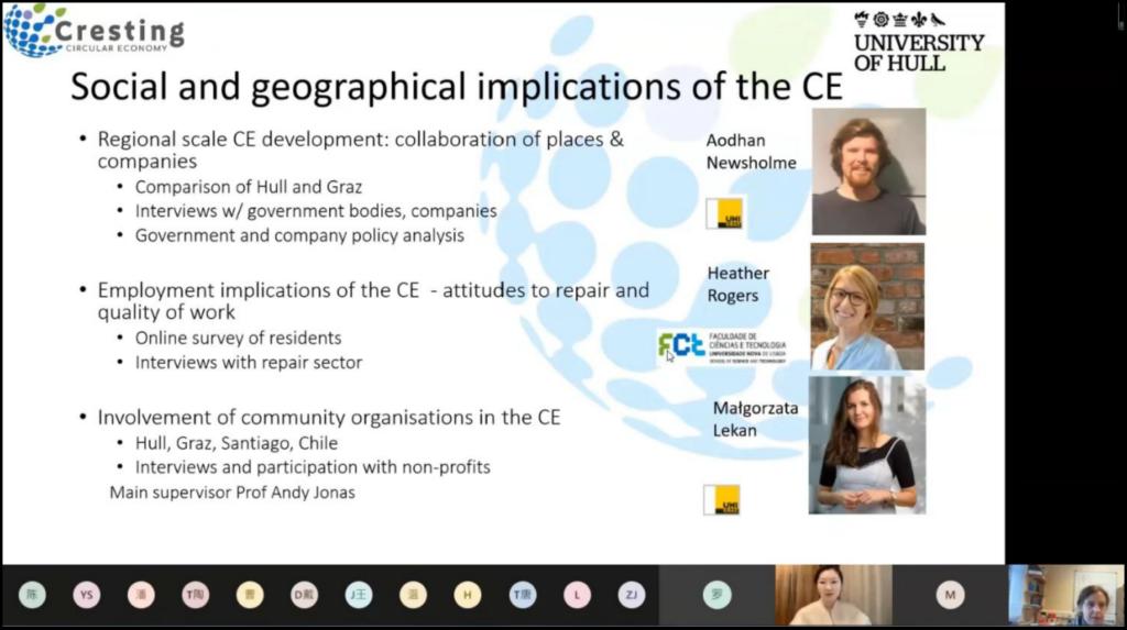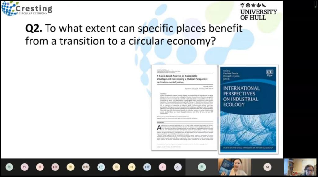 12月10日下午16:30,设计艺术学院全体研究生迎来了设计艺术学院以线上模式开展的2022年研究生海外优秀学者授课计划课程项目——《可持续设计研究》第四期课程。会议由英国赫尔大学教授、国际可持续研究学会主席Pauline Deutz教授主讲,研究生导师邓冰旎老师主持并翻译。