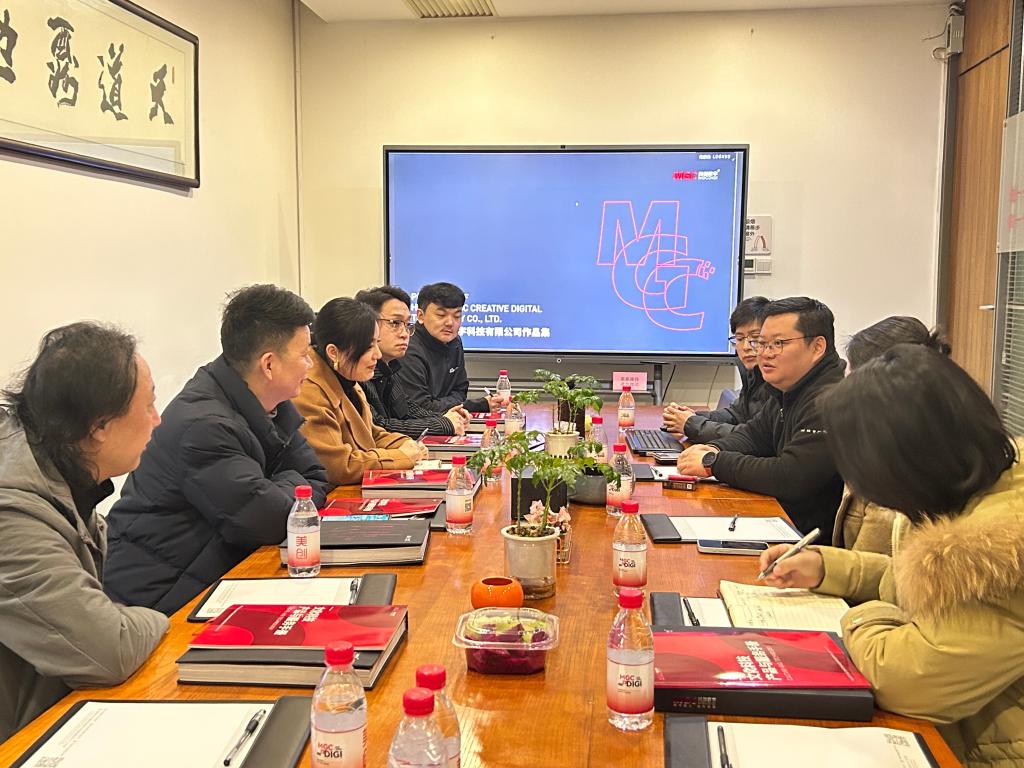 3月5日下午,学院党委书记郭剑、党委委员严海岸、就业专干程静征、2025届毕业生辅导员李世成前往湖南美创数字科技有限公司进行走访调研,开展“访企拓岗”专项工作并商讨产学研校企合作事宜。湖南省人民政府参事室特约研究员、湖南湘江新区文化创意和旅游产业协会会长、太阳成集团tyc122cc入口设计艺术学院校外研究生导师肖鑫;湖南美创数字科技有限公司董事长杨红爵、品牌部负责人廖思雨、人力资源部负责人彭佳等出席座谈会。
