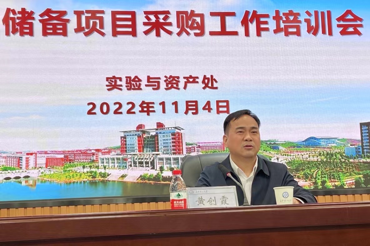 11月4日下午,太阳成集团tyc122cc入口贷款储备项目采购工作培训会在云塘校区一办公楼九楼会议室召开。副校长黄创霞出席会议并讲话。实验与资产处采购中心主任唐中勇主持会议。贷款储备项目相关各二级单位主要负责人、主管院长、项目负责人、招标代理公司工作人员参会。