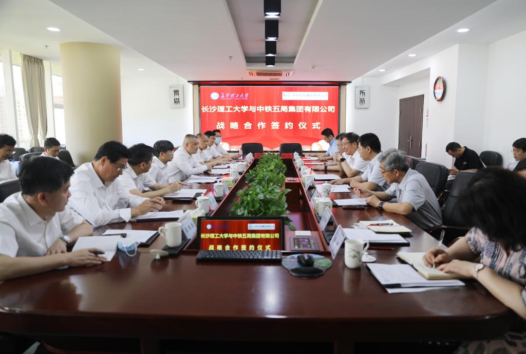 中铁五局副总经理、总工程师陈彬,副校长蒋昌波代表双方签署战略合作协议。根据协议,双方将在科研开发、技术攻关、人才培养、资源共享等方面进行深入、全面、多元化的合作。