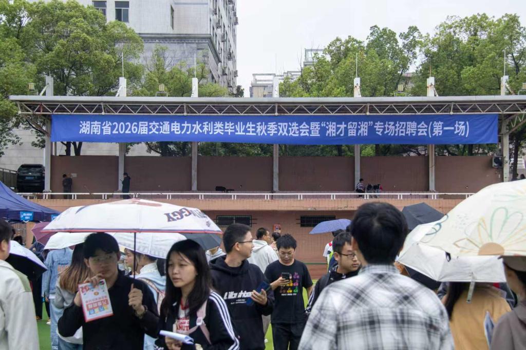 9月20日下午,我校2026届毕业生秋季综合双选会(第一场)暨“宏志助航”计划专场招聘会在金盆岭校区成功举办。此次双选会吸引了来自全国的347家用人单位,为毕业生提供就业岗位近万个,岗位需求涵盖交通、电力、水利、制造、金融、教育、食品、互联网通信、新能源材料等不同行业领域,为毕业生搭建起广阔的就业选择平台。 尤其是作为中国国内规模最大的国有建筑企业和最大的国际工程承包商的中国建筑,此次也组织旗下35家企业参加了本次双选活动。此外广东东莞、广东惠州、江苏泰兴和省内的长沙望城、湘潭等地人社部门也组织了超过80家企业组团参与。