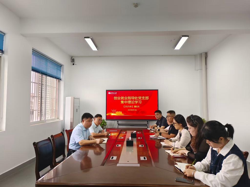 9月18日下午,创业就业指导处、团委党支部在学生活动中心322会议室围绕“以伟大抗战精神铸魂育人 以教育家精神强师筑梦”主题开展主题党日活动,集中学习党的创新理论,总结主题教育成果。支部书记田上主持会议并讲话,全体党员参加学习。